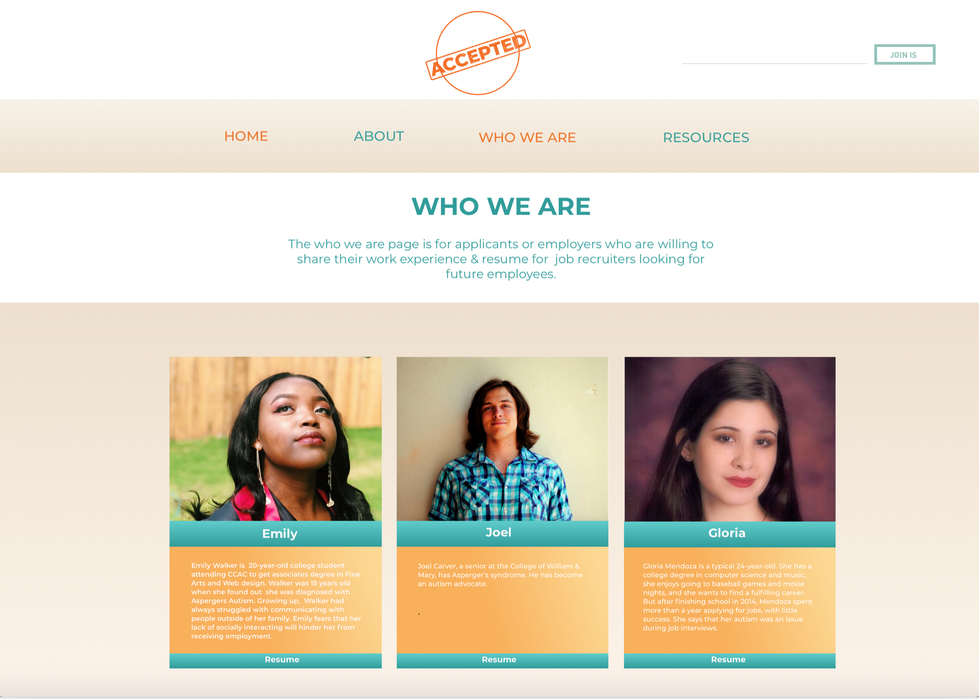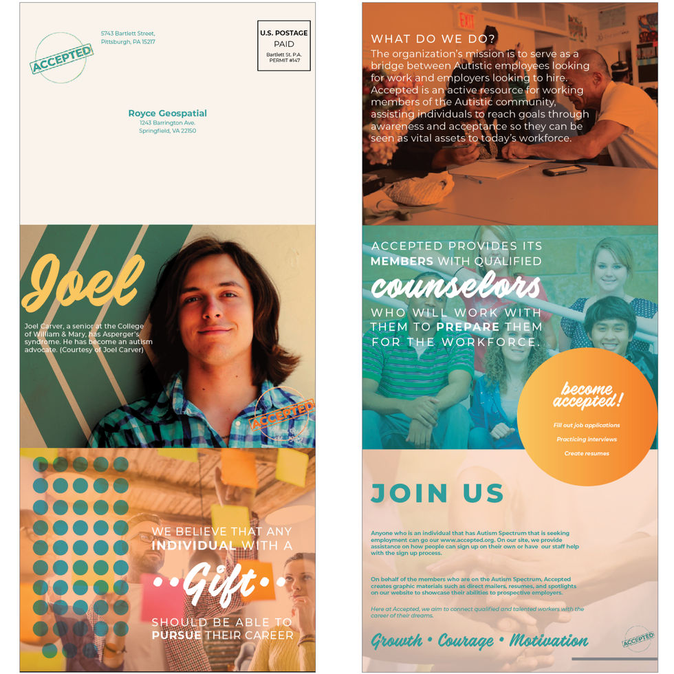 The Accepted mailer is meant to promote individuals who have autism spectrum and to help job recruiters for finding hires.